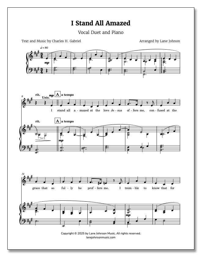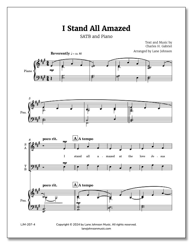 I originally did a piano solo arrangement as a reflection of my tender gratitude for the Lord's Atonement. Later, at the request of several people, I created a choral arrangement based somewhat on the piano version and is designed to be accessible my most choirs.
