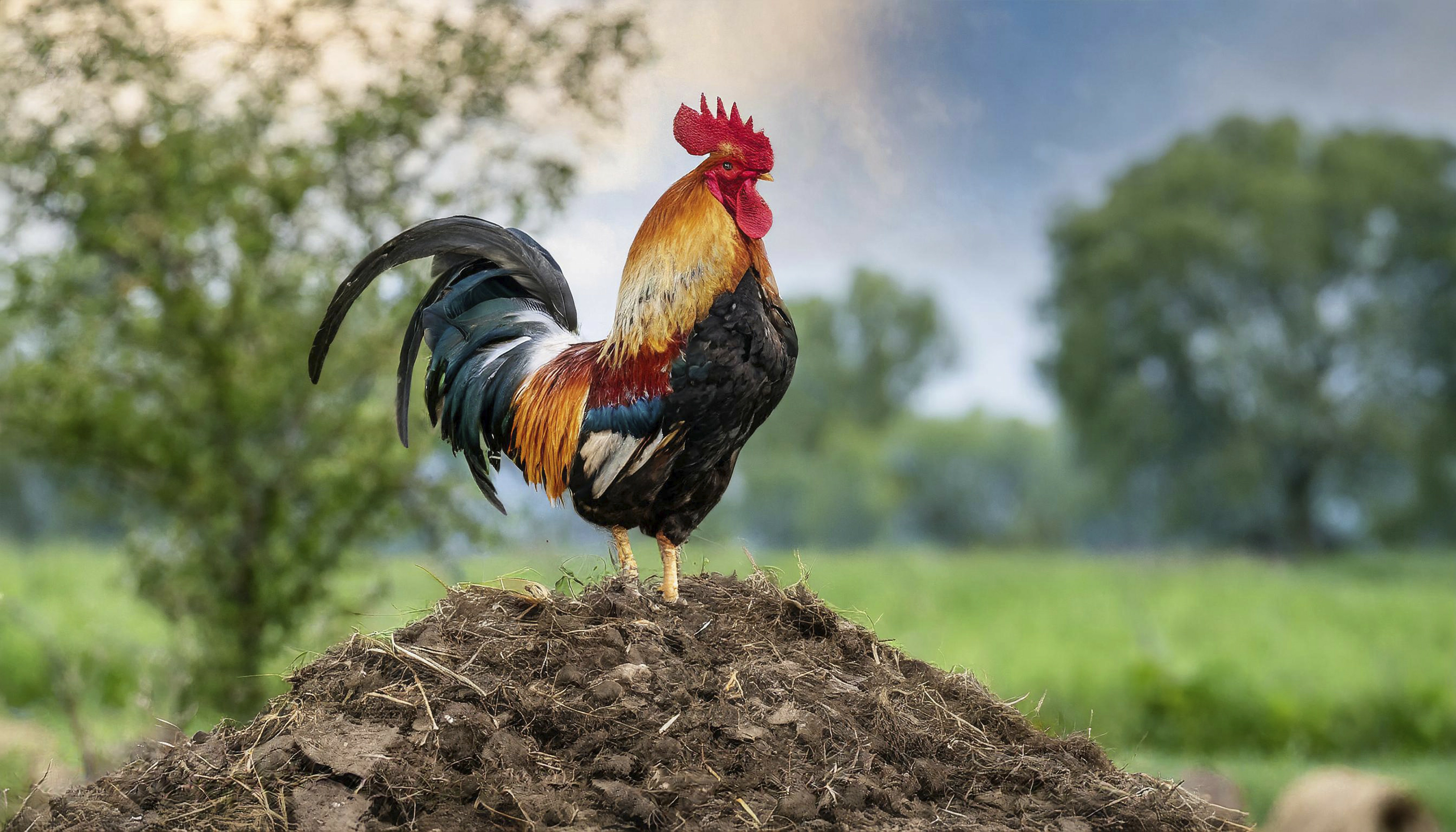 The phantom of a yellow rooster flaunting a scarlet comb, on top of a dung pile crying hallelujah to the streaks of daylight